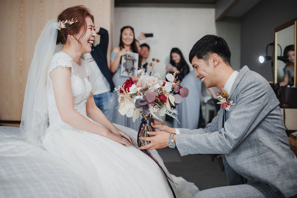 新郎闖過重重關卡總算到新娘面前